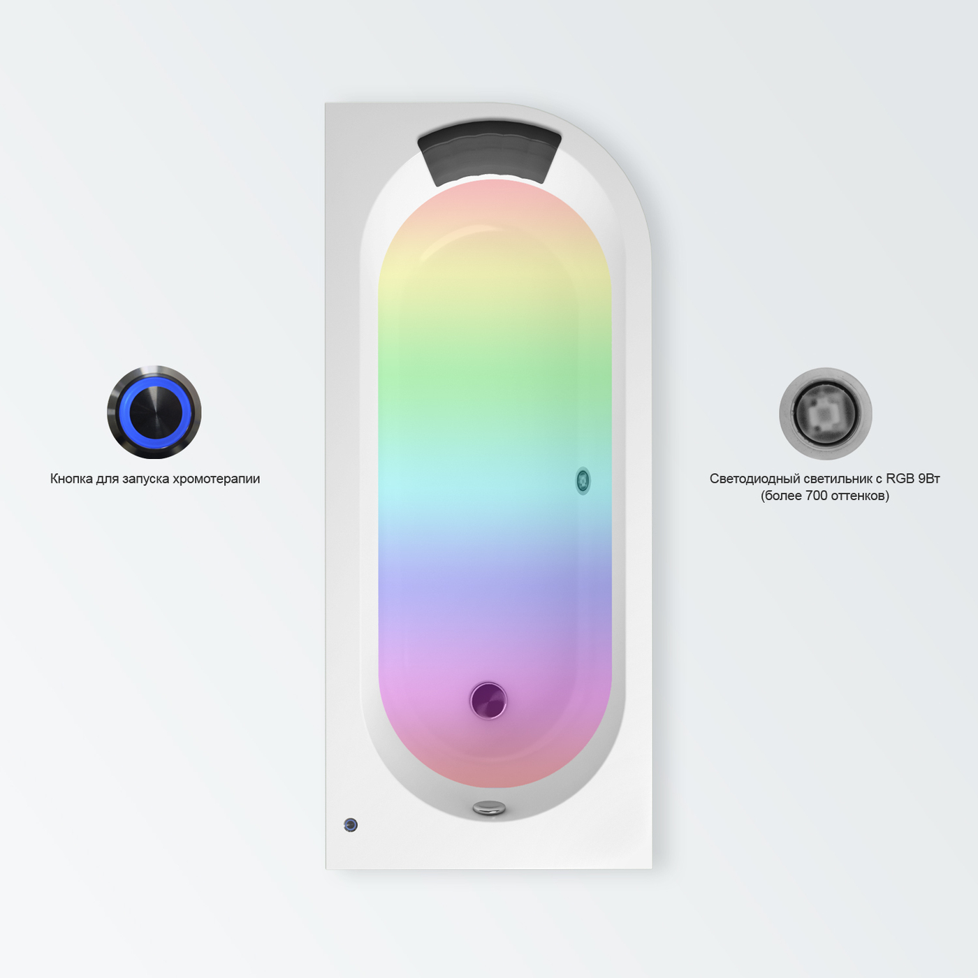Многоцветная подводная подсветка;Перелив;Подголовник;Угловая конструкция