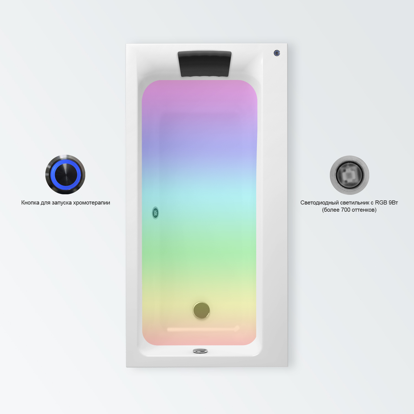 Многоцветная подводная подсветка;Перелив;Подголовник
