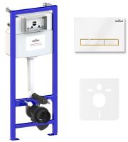 система инсталляции Relfix 38010010; комплект крепления для скрытого подвесного монтажа; шумоизоляция для подвесной керамики 38050010; клавиша смыва Relfix 38050802 (цвет белый/золотой глянец, материал пластик, толщина 13 мм - одно из самых тонких решений на рынке); инструкция по монтажу и эксплуатации; гарантийный талон.