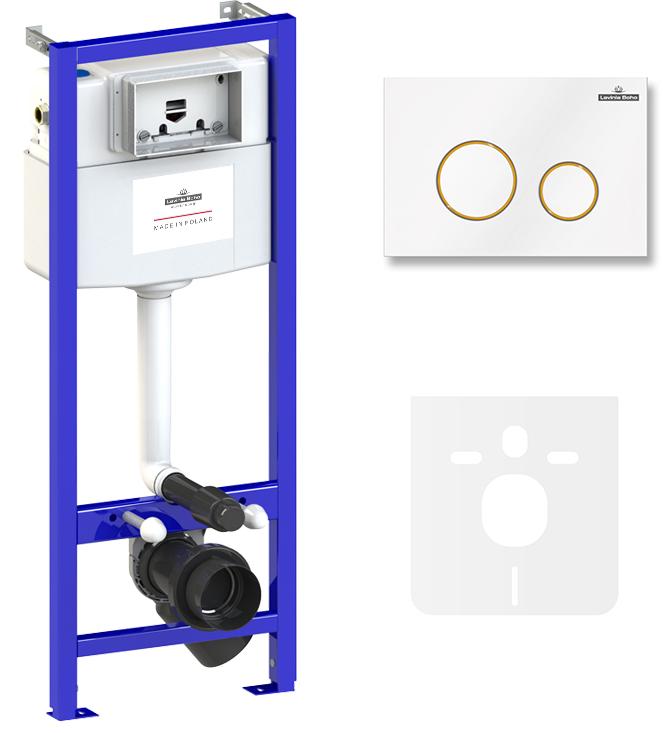 система инсталляции Relfix 38010010; комплект крепления для скрытого подвесного монтажа; шумоизоляция для подвесной керамики 38050010; клавиша смыва Relfix 38050804 (цвет белый/золотой глянец, материал пластик, толщина 13 мм - одно из самых тонких решений на рынке); инструкция по монтажу и эксплуатации; гарантийный талон.