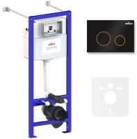 система инсталляции Relfix 38010020; комплект крепления для скрытого подвесного монтажа; шумоизоляция для подвесной керамики 38050010; клавиша смыва Relfix 38050803 (цвет матовый черный/золотой глянец, материал пластик, толщина 13 мм - одно из самых тонких решений на рынке); инструкция по монтажу и эксплуатации; гарантийный талон.
