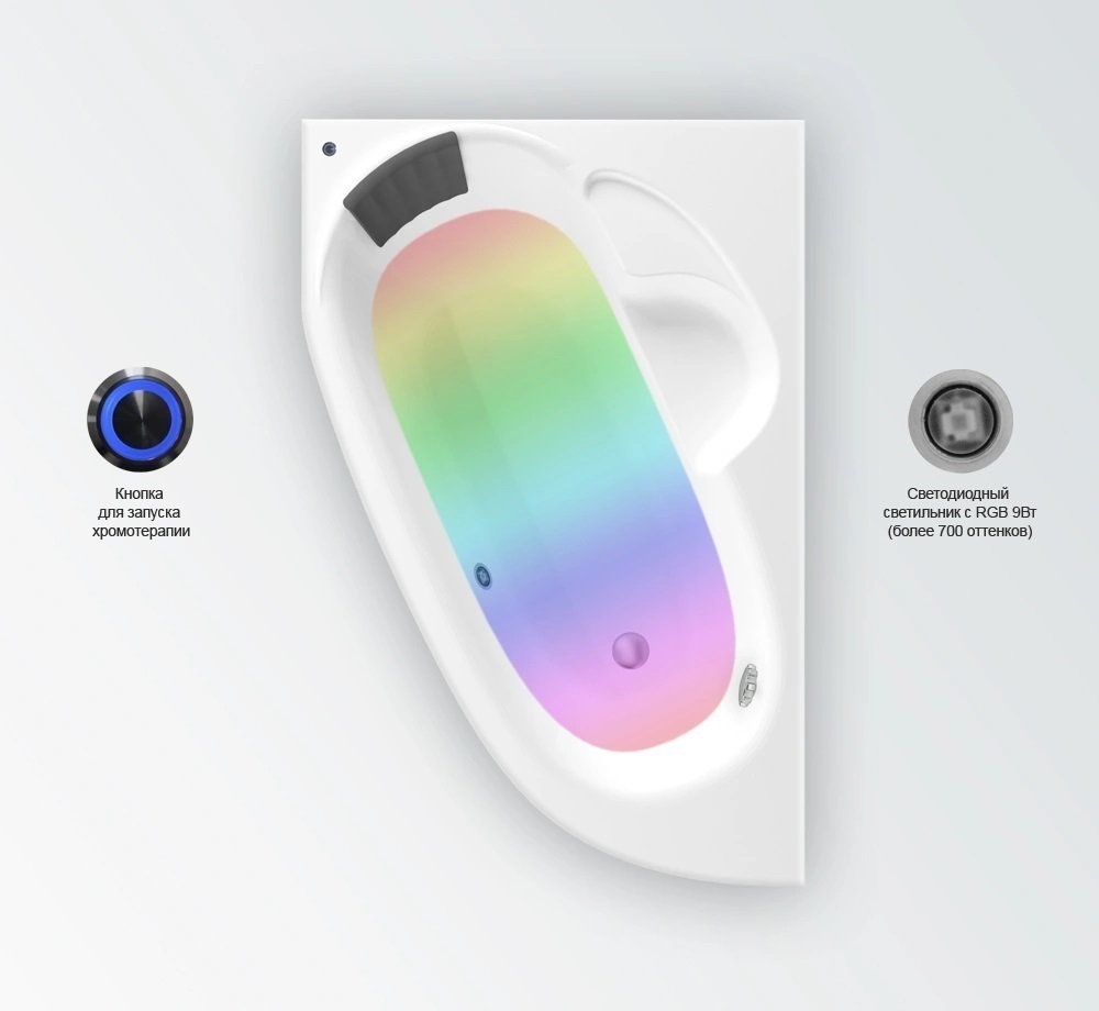 Многоцветная подводная подсветка;Перелив;Подголовник;Угловая конструкция