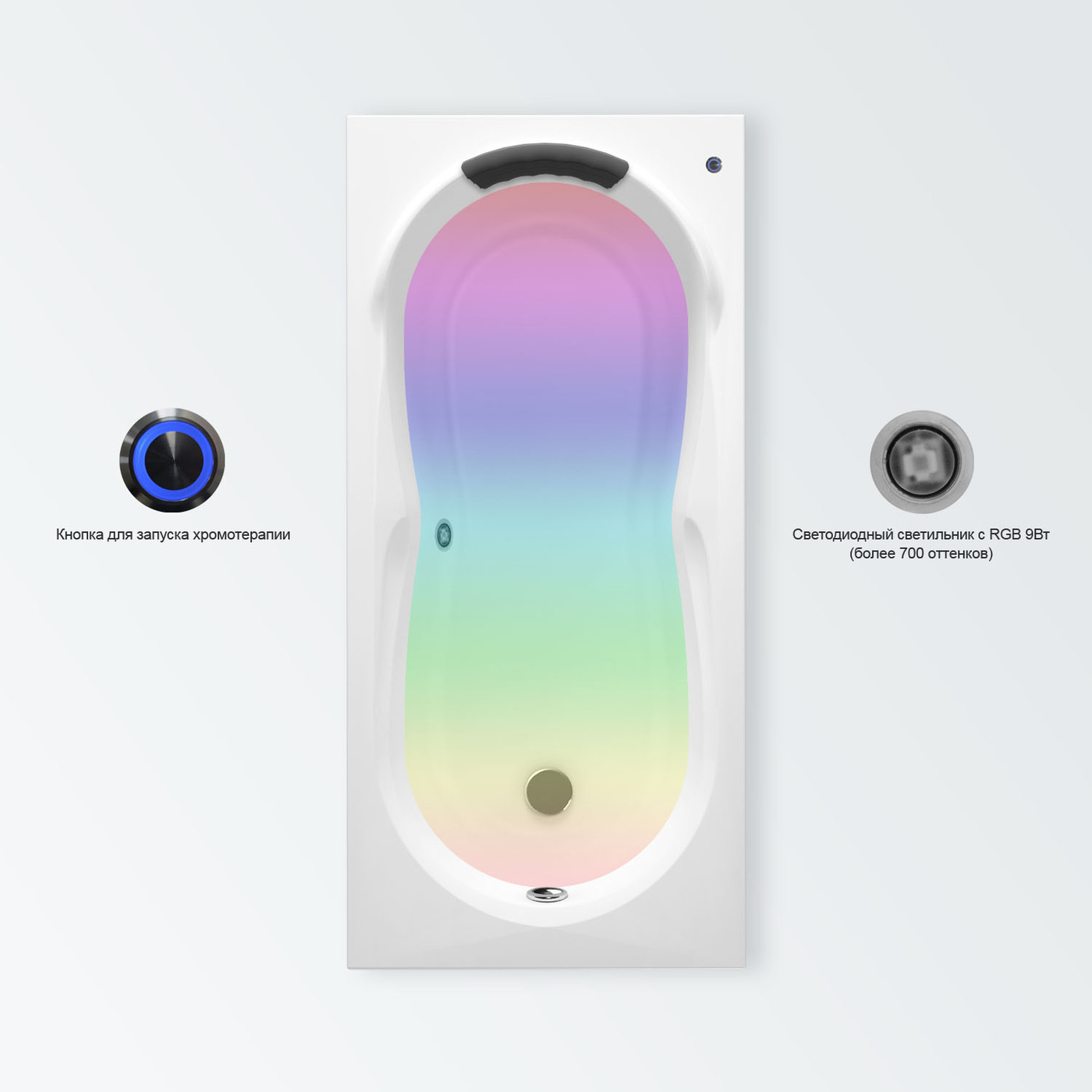 Многоцветная подводная подсветка;Перелив;Подголовник